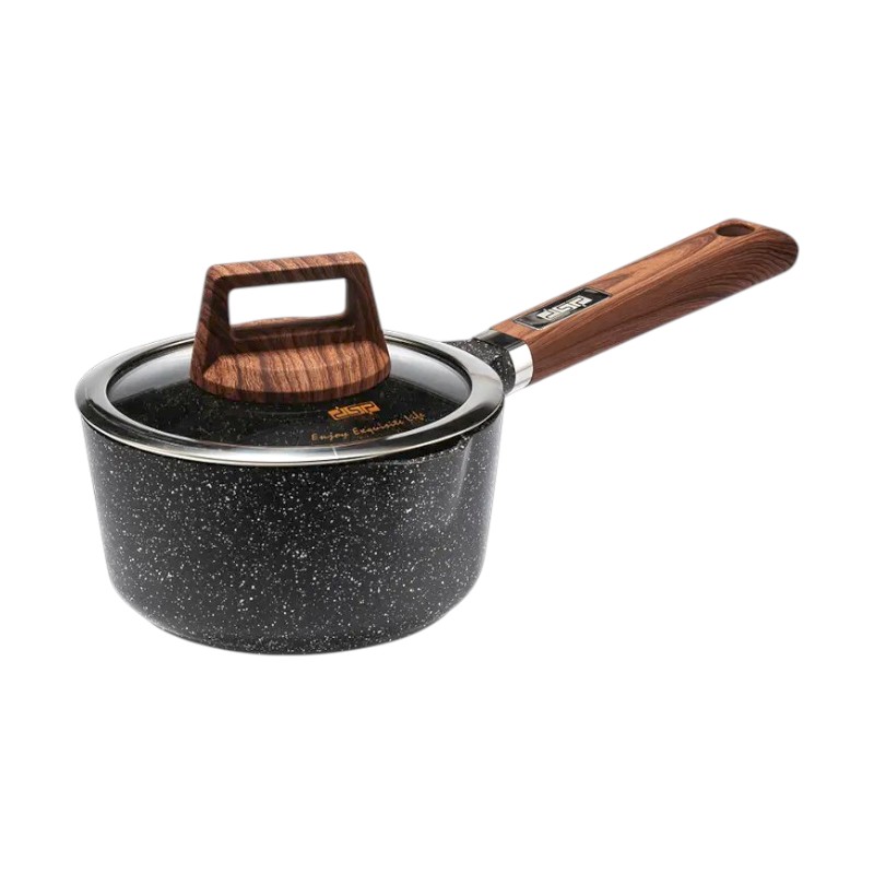 Γαλατιέρα-σαλτσιέρα υψηλής ποιότητας κατασκευής από την DSP, με ισχυρή αντικολλητική επίστρωση γρανίτη και γυάλινο καπάκι.