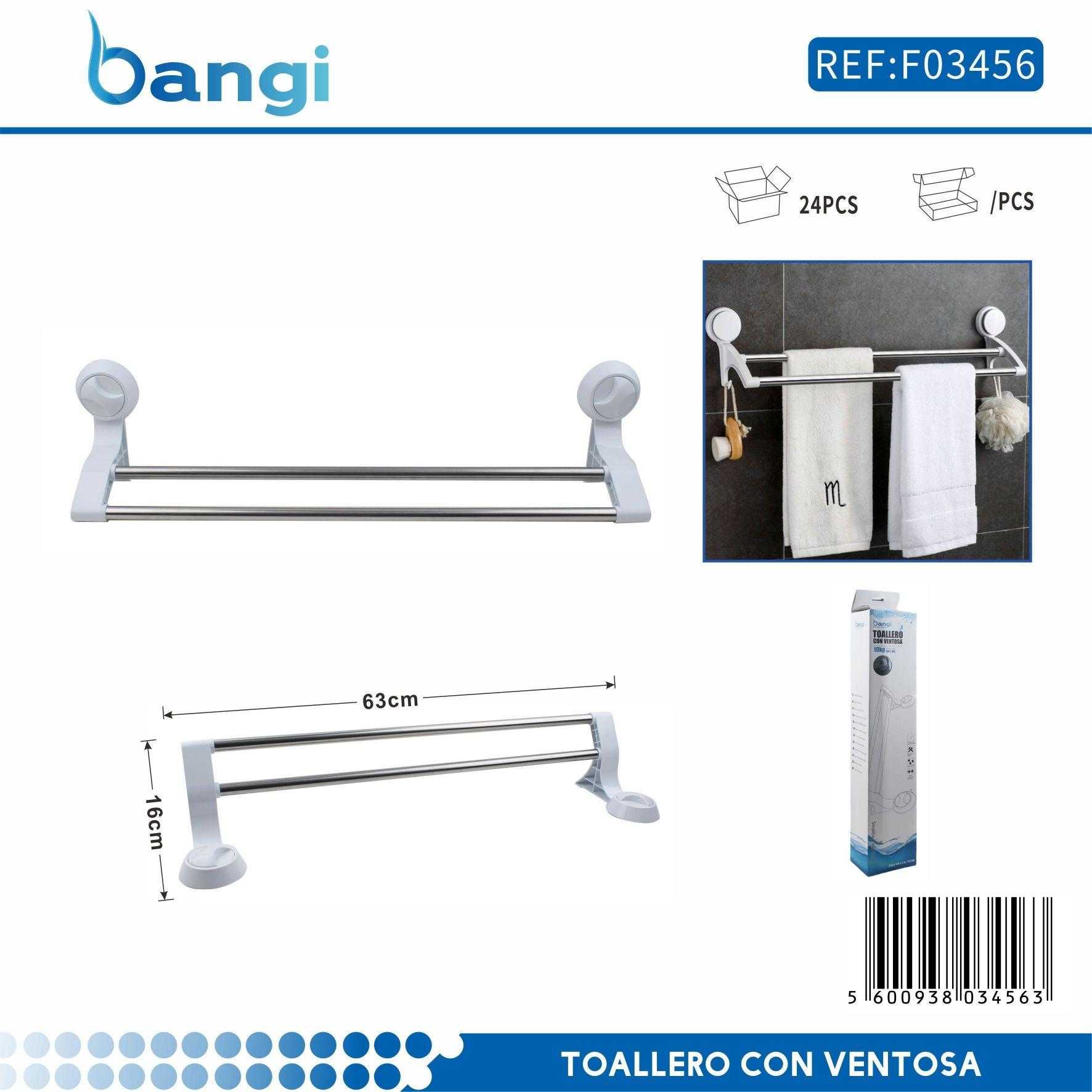 Κρεμάστρα πετσέτας μπάνιου διπλή ράγα με βεντούζες – 63cm – 03456