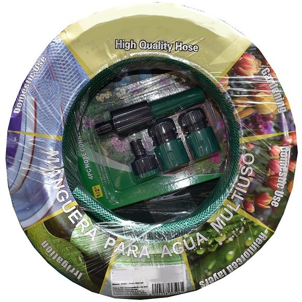 Λάστιχο ποτίσματος, εύκαμπτο και ιδιαίτερα ανθεκτικό, κατάλληλο για επαγγελματική ή οικιακή χρήση. Διαθέτει πλήρες σετ 4 τεμαχίων με εξάρτημα ποτίσματος και ταχυσύνδεσμο βρύσης. Διάμετρος: 1/2”. Μήκος: 30m.
