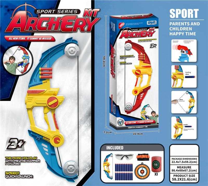 Παιδικό σετ τοξοβολίας με μεγάλο τόξο, βέλη με βεντούζα, ταμπλό στόχου και αξεσουάρ. Εντυπωσιακός σχεδιασμός, ανθεκτική κατασκευή και εργονομική λαβή για να εξασκήσεις τις ικανότητές σου και να γίνεις ο καλύτερος του αθλήματος!