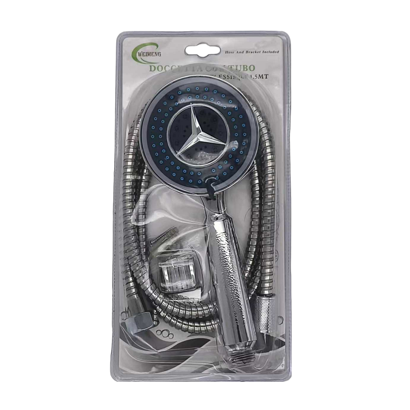 Τηλέφωνο-ακροφύσιο ντουζιέρας με 3 επιλογές πίεσης και σπιράλ σωλήνα μήκους 1.5 μέτρου, με όλα τα παρελκόμενα τοποθέτησης. Εύκολη τοποθέτηση σε όλες τις βρύσες μπανιέρας και ντουζιέρας. Το ακροφύσιο διαθέτει προστατευτικά σιλικόνης στις εξόδους νερού, που αποτρέπουν την συσσώρευση αλάτων. Υψηλή ποιότητα κατασκευής με χρωμέ φινίρισμα, υψηλής ανθεκτικότητας.