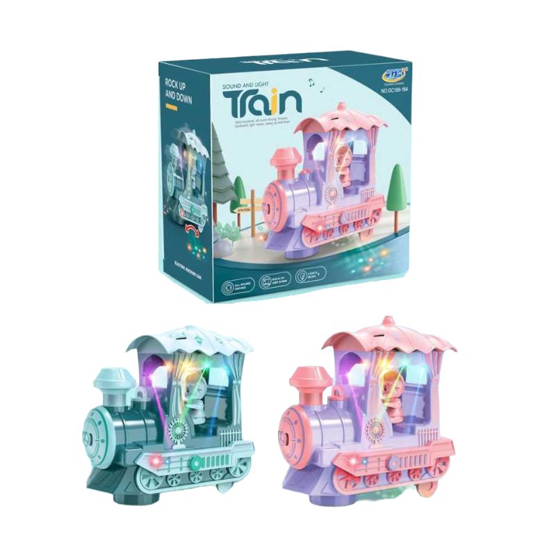 Παιδικό ηλεκτρονικό τρενάκι με ήχους, πολύχρωμο φωτισμό και κίνηση με περιστρεφόμενη βάση.